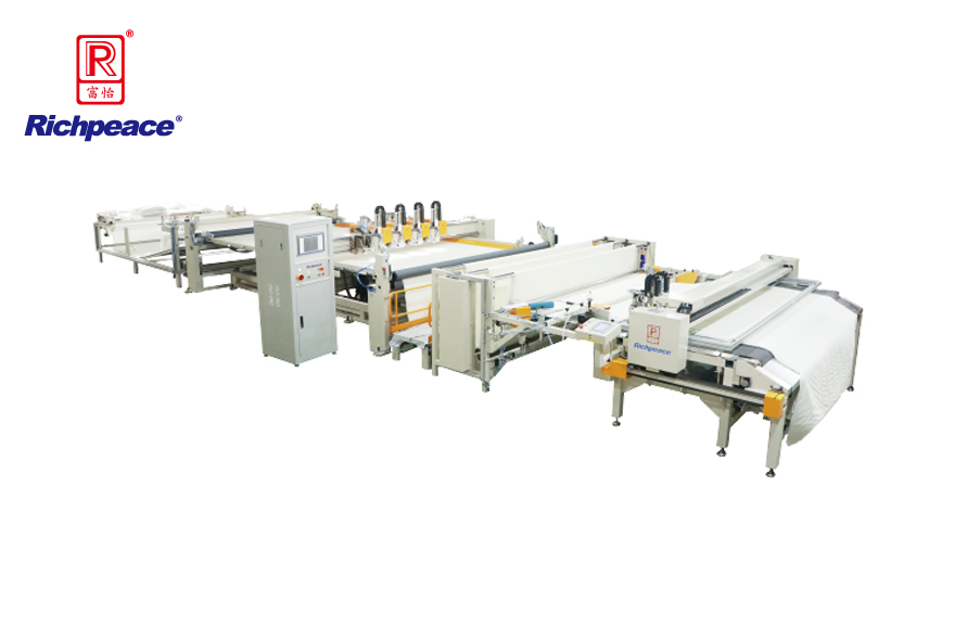 适用于带底布、面布、喷胶棉床笠的中间花型绗缝,四边和四角裁切。