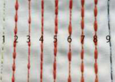 2、花样缝:由步进电机控制,可自行设置产生1-9, 9种米粒状不同线迹。