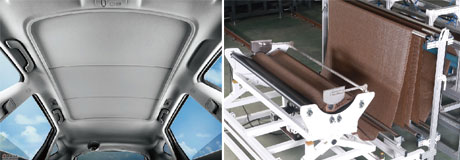 适用于汽车天窗卷阳帘面料,复合皮革,海绵,尼龙网布等。
