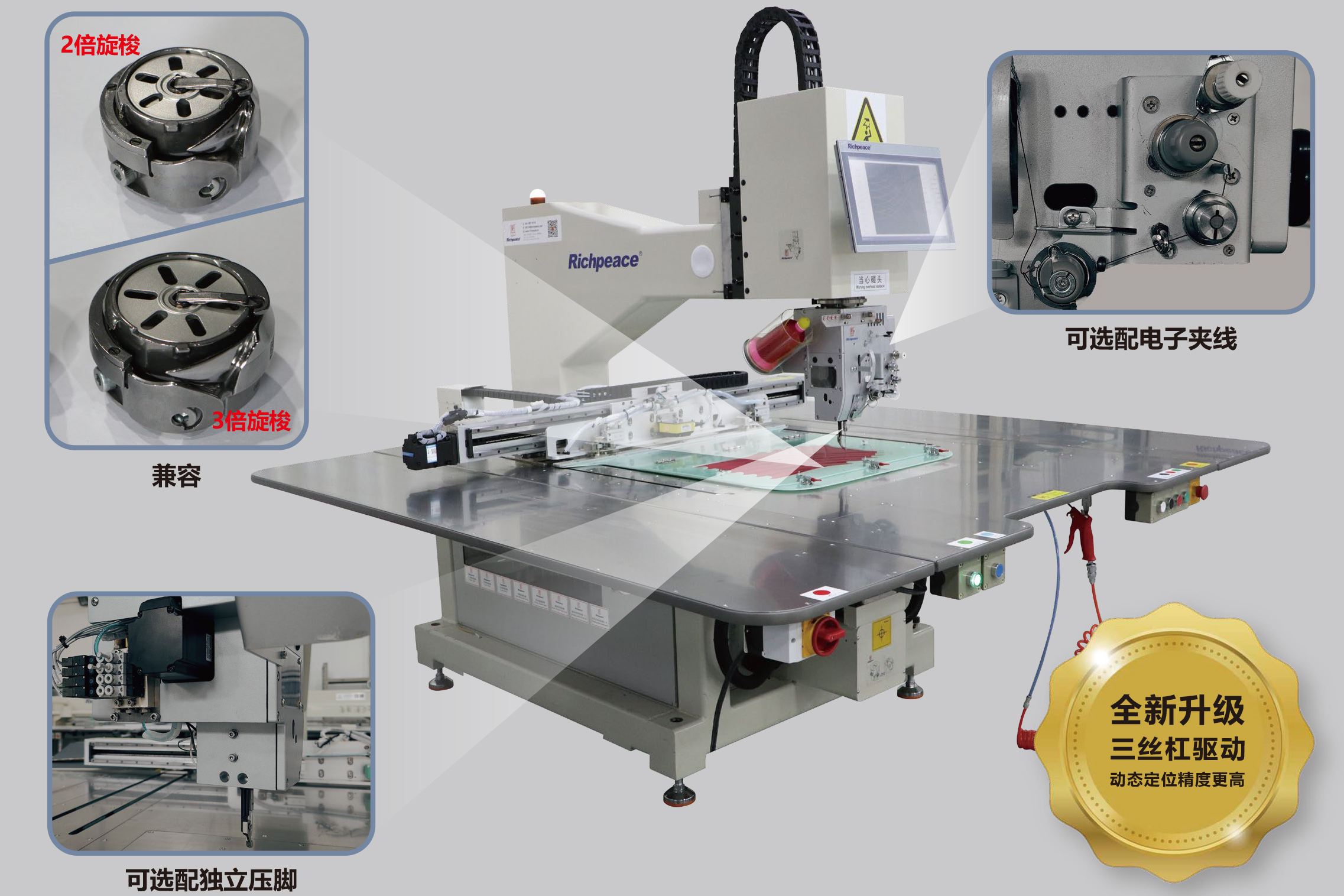 01、全新升级三丝杠驱动,动态定位精度更高。