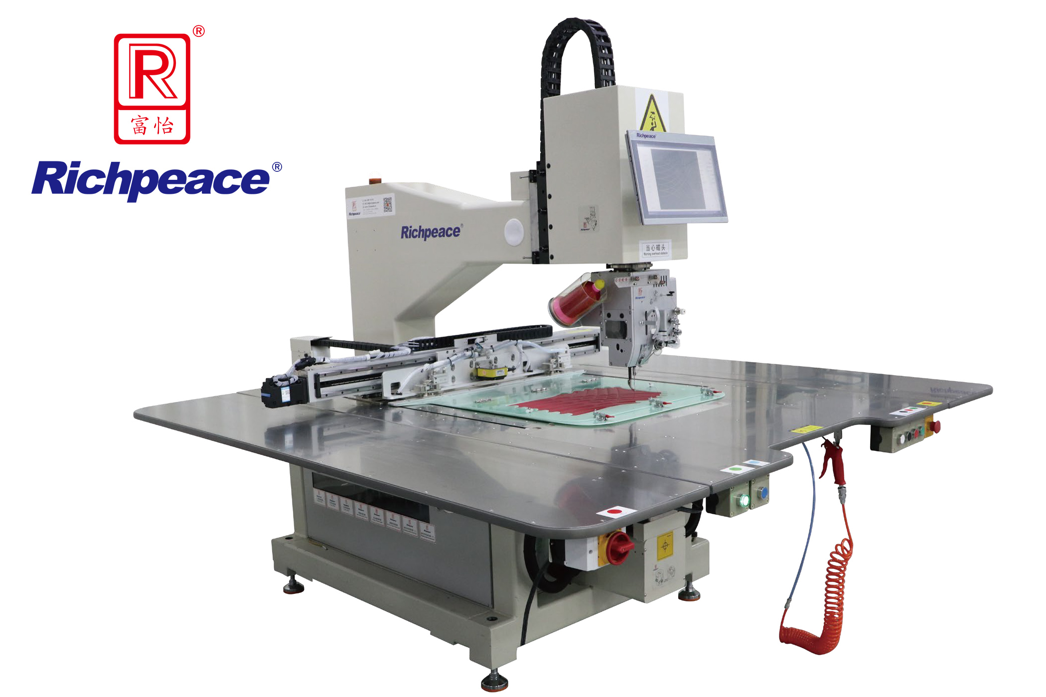 08、采用伺服电机驱动龙门同驱技术,使用精度直线导轨传动,科学分 布框架驱动动力,让框架运动响应更高,花样精度更高。