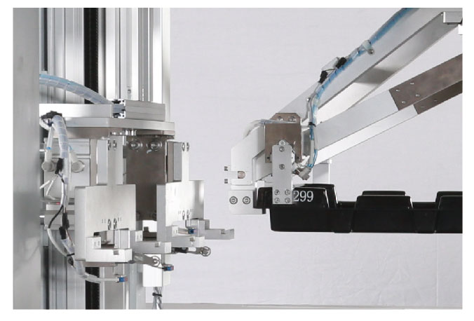2、料盒可实现自动精确定位对中,并能够实现自动抓取。