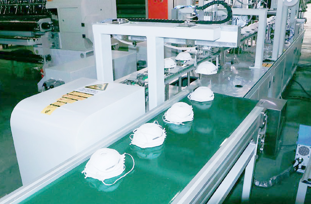 必一体育全自动罩杯口罩生产线实现了罩杯口罩从卷料到成品的整个流程。该生产线主要由以下工位组成:料架、杯外侧体成型、杯体成型、转序、移印、鼻梁条焊接、头带打钉、呼吸阀打孔超声波焊接、口罩拾取。每台机器根据客户需求选择进行设计安装。设备工位介绍